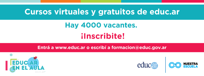 - Por un lado, los cursos virtuales de educ.ar (talleres y cursos autoasistidos). Se trata de talleres disciplinares, multidisciplinares y de innovación institucional y profesional para Inicial, Primaria y Secundaria, además de tres cursos autoasistidos de aplicaciones para el aula.